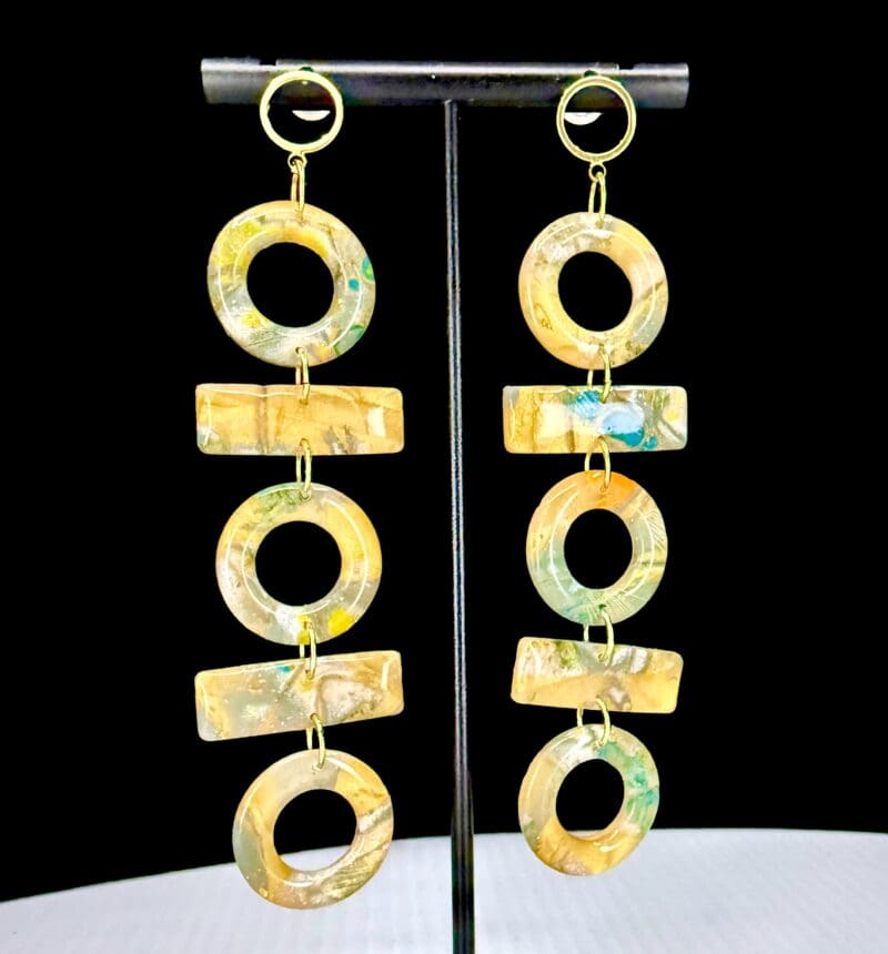 Beachy Luxe Geometric Stack Exaggerated Dangle Earrings