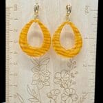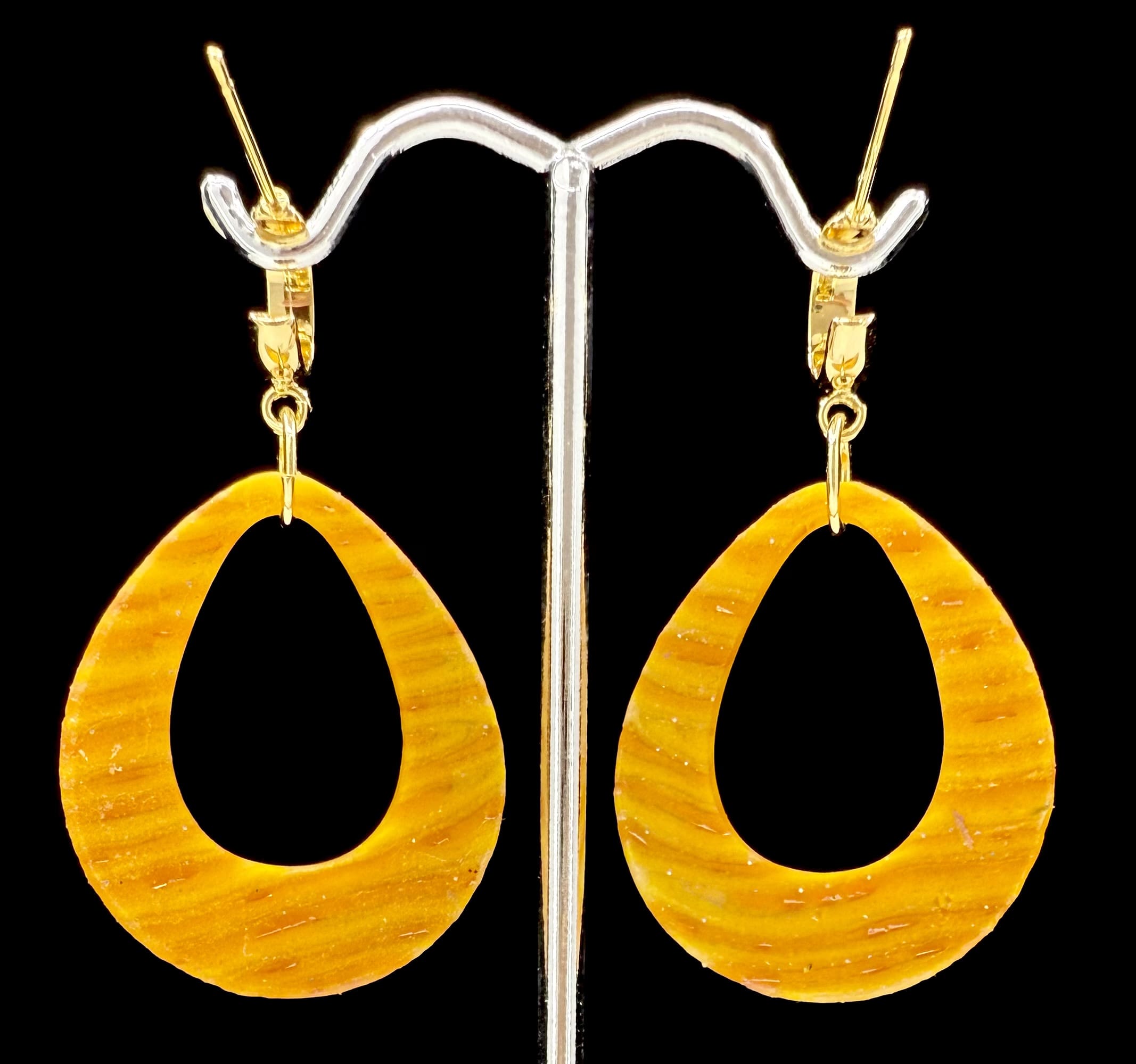 Golden-orange open teardrop earrings with shimmer texture from the Deconstructed Candy Corn Collection. Lightweight and resin-glossed.
