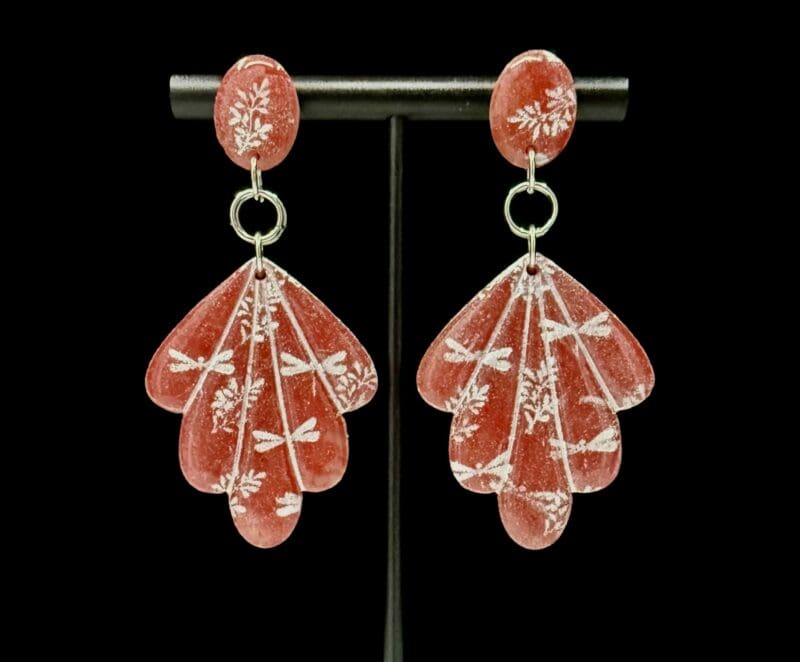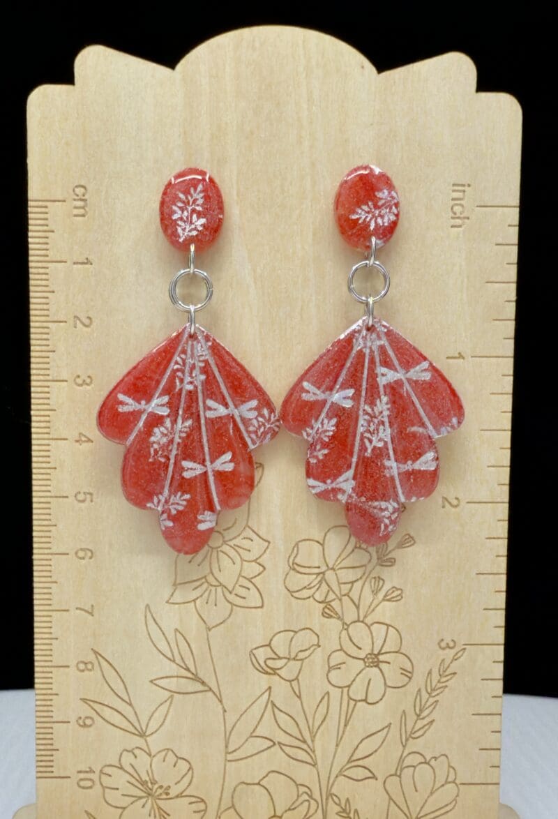 Inspired by the pull between light and movement, these statement earrings feature detailed silver dragonflies suspended against a flame-red backdrop. The contrast is intentional — delicate, luminous dragonflies set into a bold, glowing surface, capturing the moment just before impact.