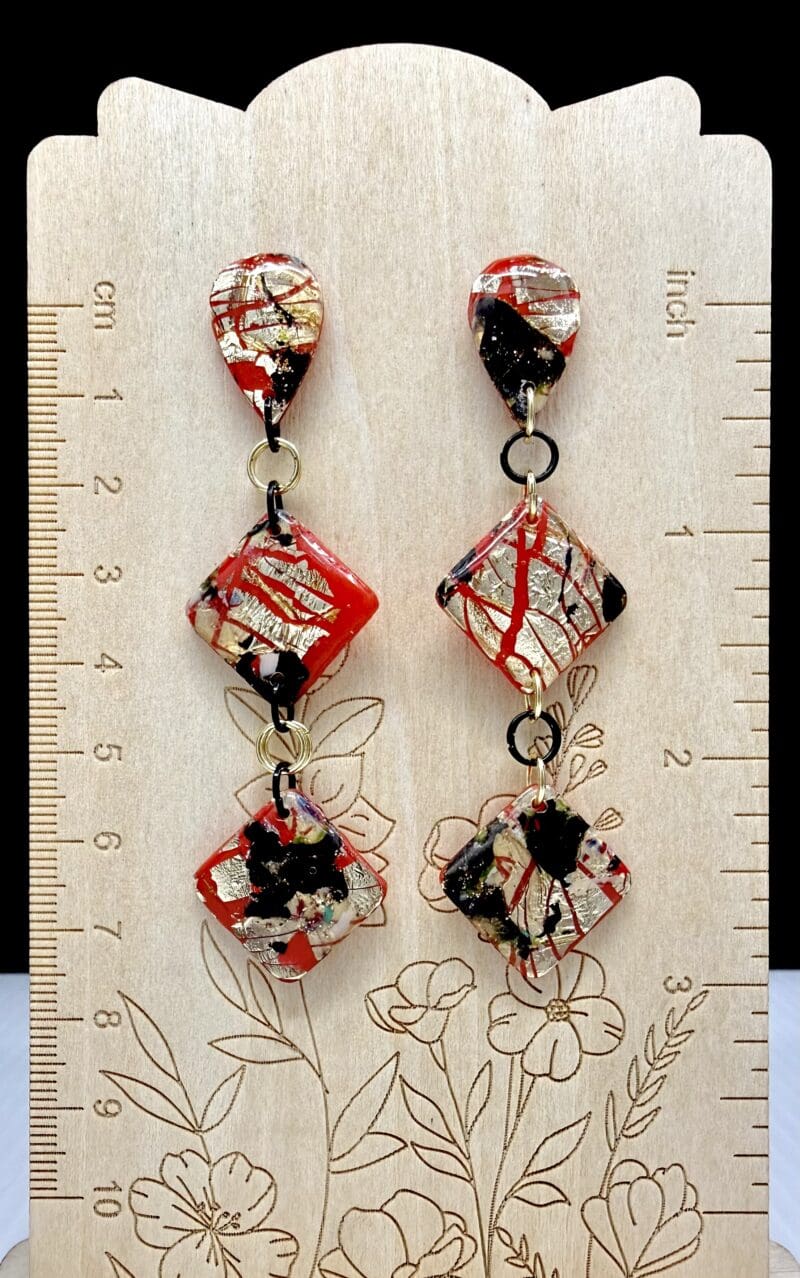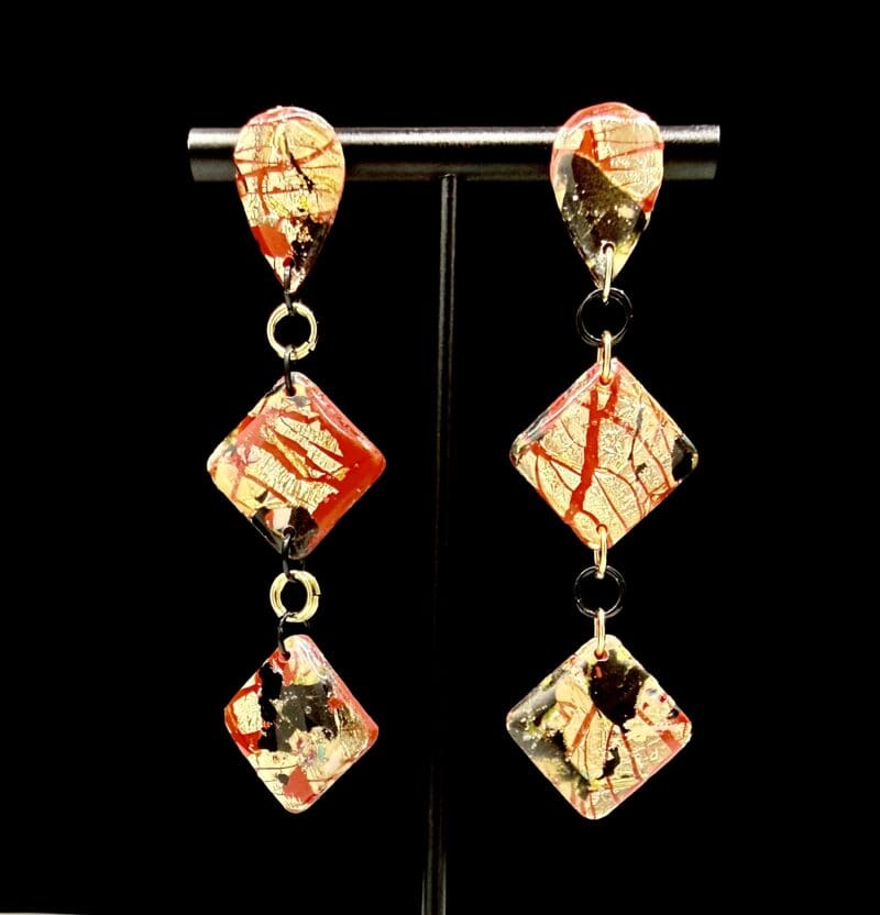 Foiled Disruption Double Diamond Dangle Earrings