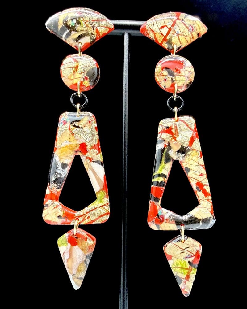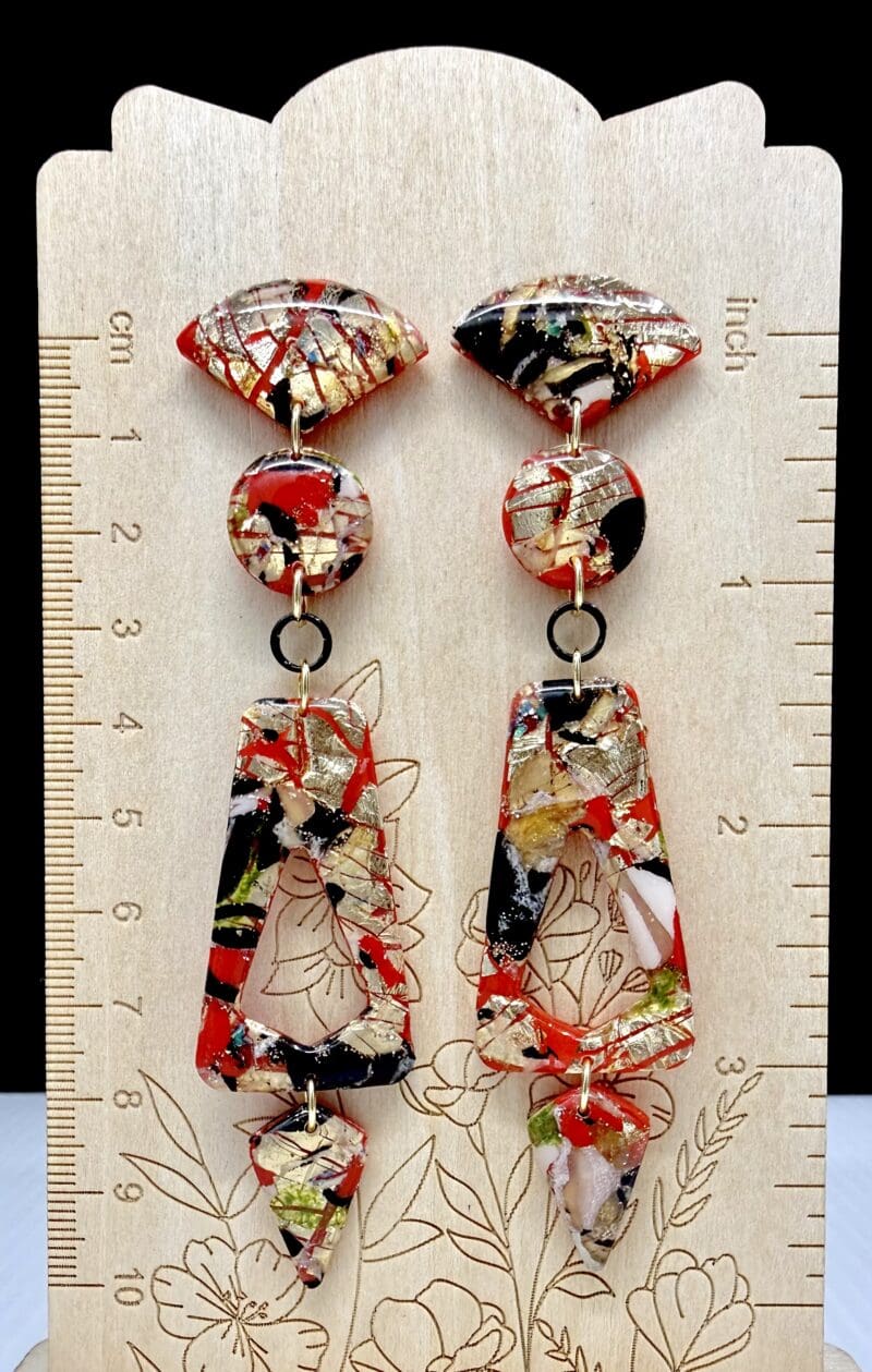 Foiled Disruption Geometric Stacked Dangle Earrings