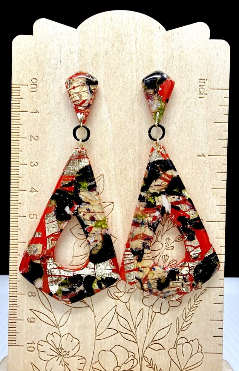 Foiled Disruption Large Elongated Triangle Drop Earrings