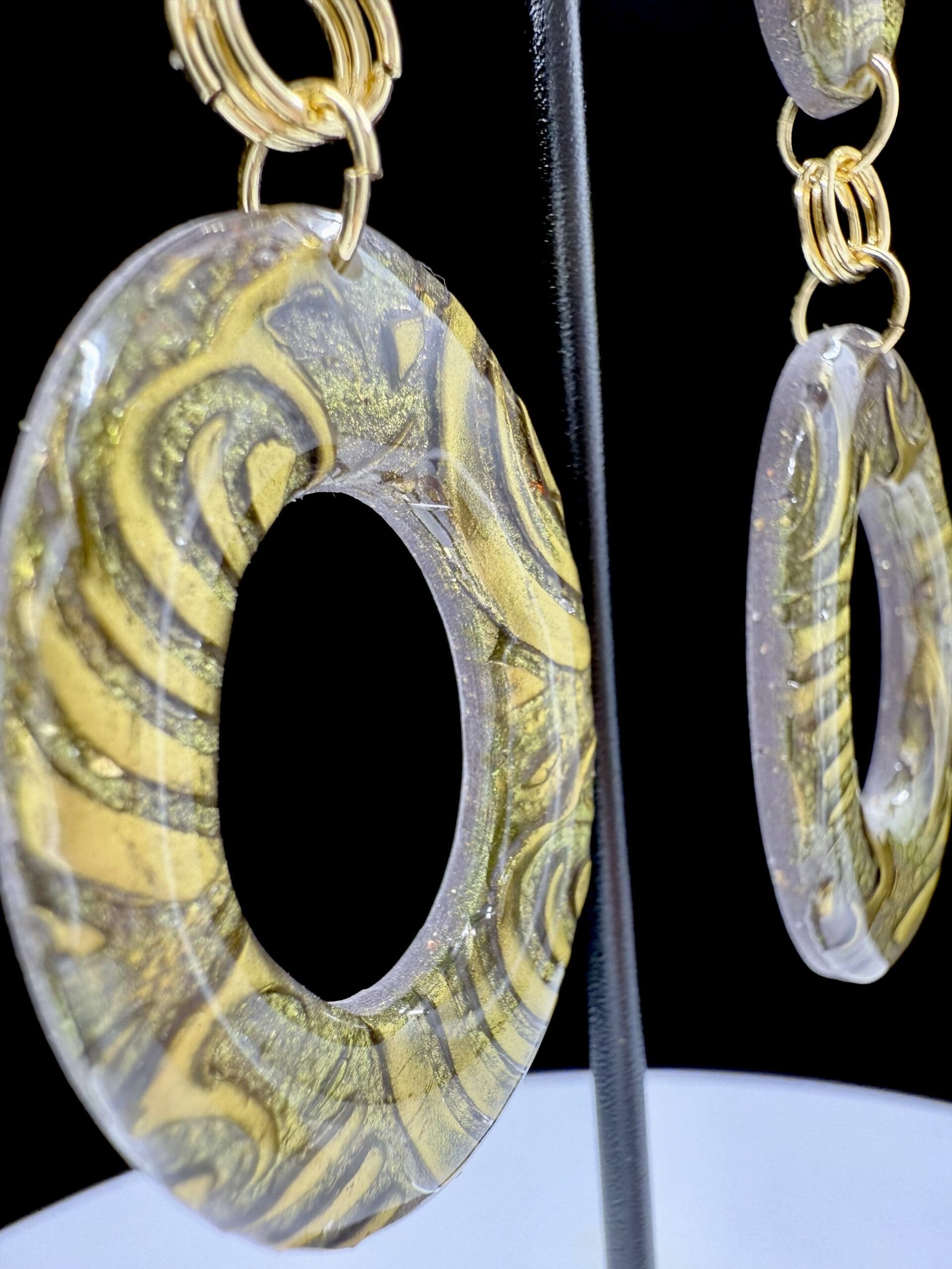 The Golden Brocade Collection brings vintage textile elegance to jewelry form with golden swirling ovals, resin gloss, and 18k gold-plated findings. See them in the sun here: https://www.facebook.com/share/v/1BT7VSEmTz/?mibextid=wwXIfr