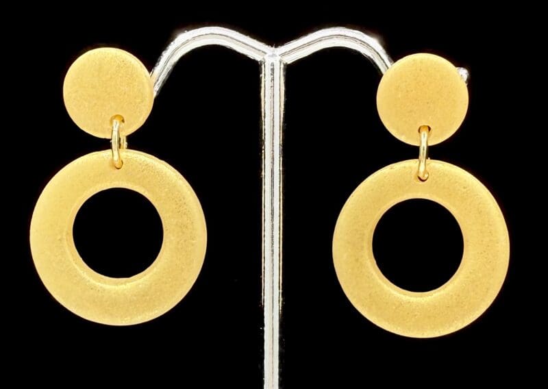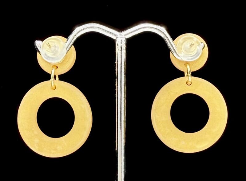 Soft golden tones form clean, open circles with an easy, modern presence. Simple, lightweight, and quietly bold—these let shape and color do the talking. See how they were made here: https://www.facebook.com/share/v/14TrEqAZVLj/