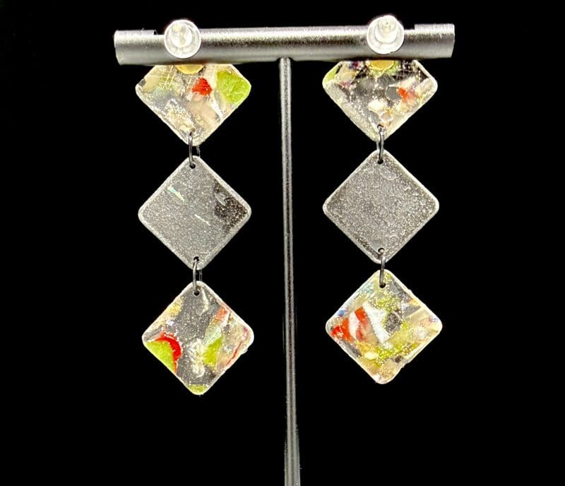 Gritty Disruption Short Triple Diamond Dangle Earrings