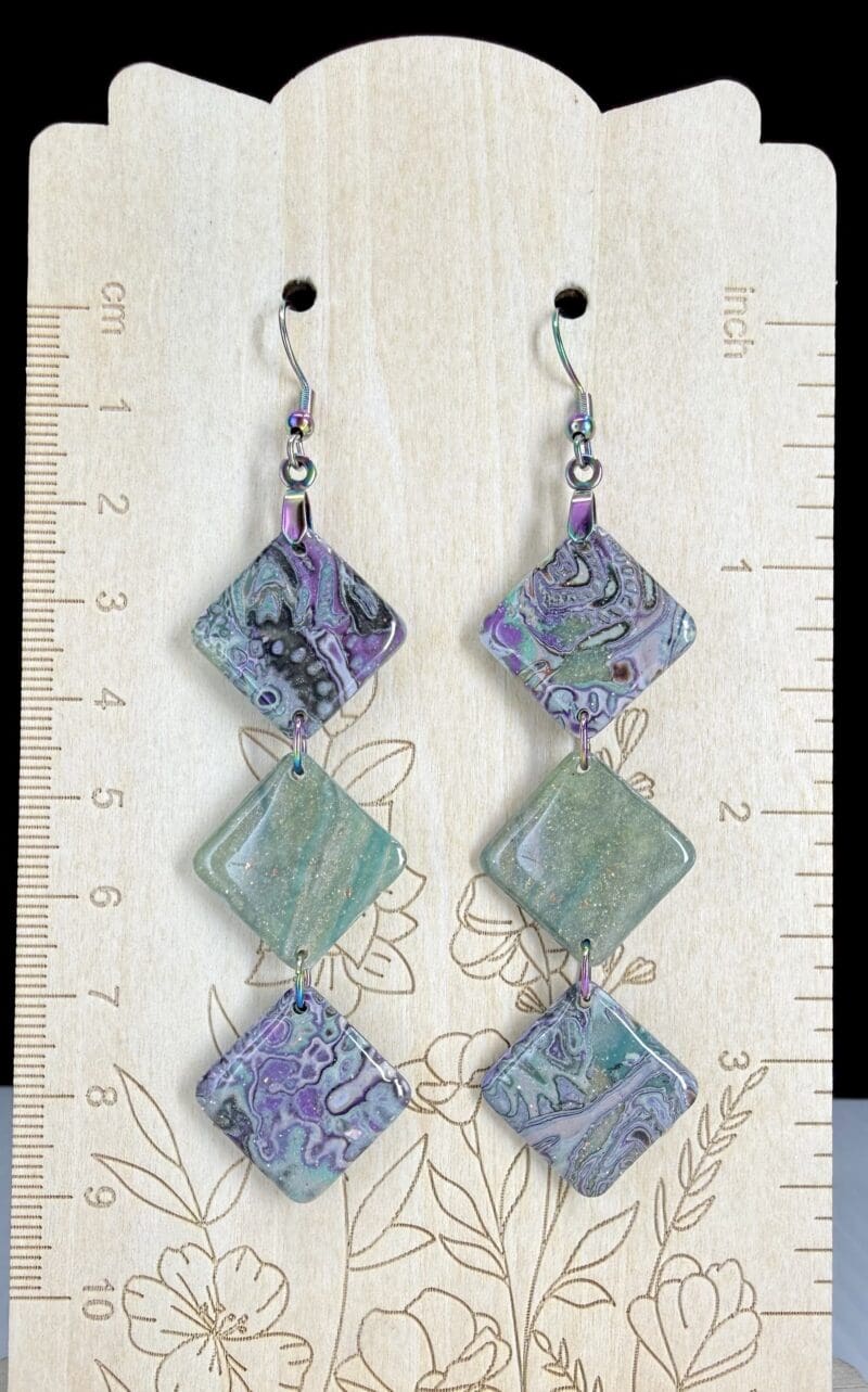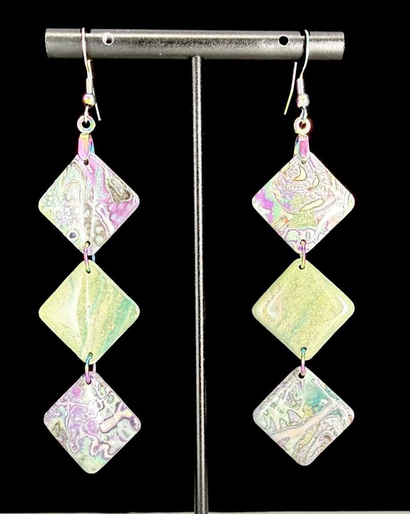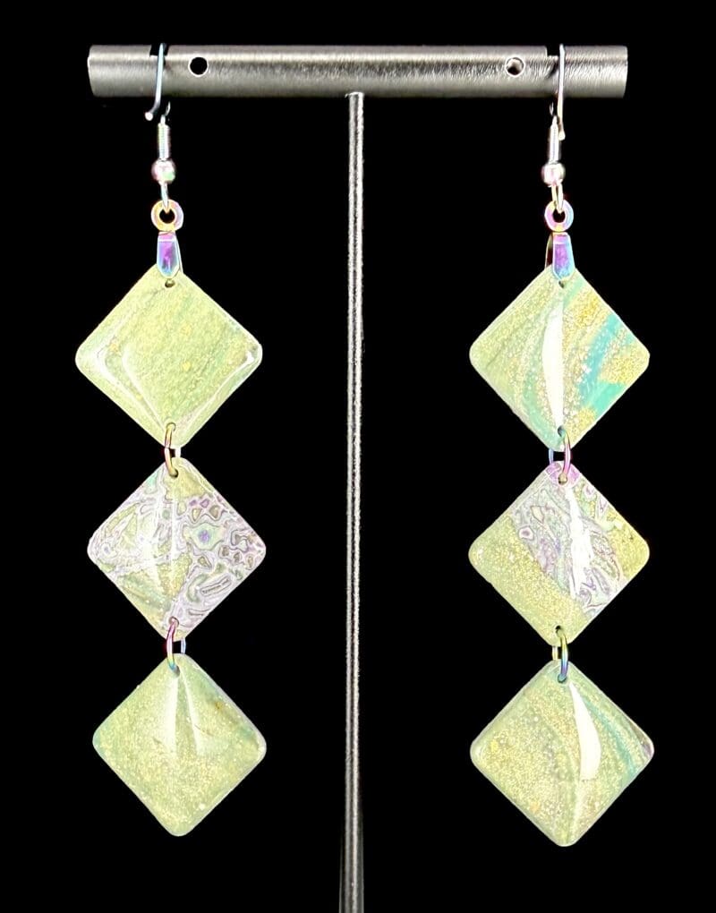 Imperial Spring Mokume Diamond Dangle Earrings