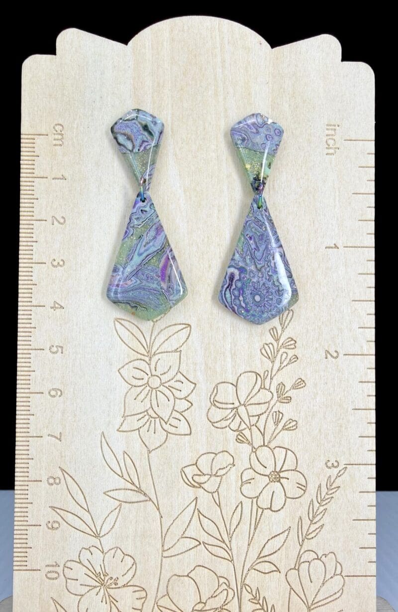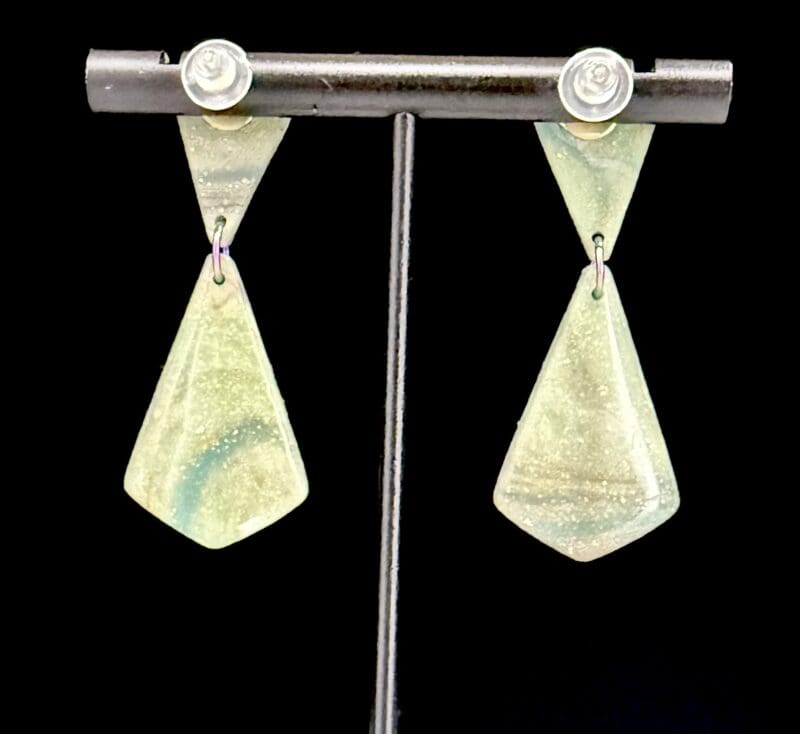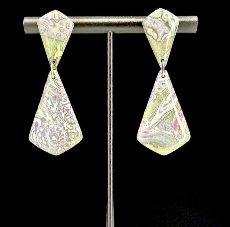 Imperial Spring Mokume Elongated Triangle Drop Earrings