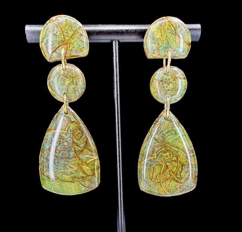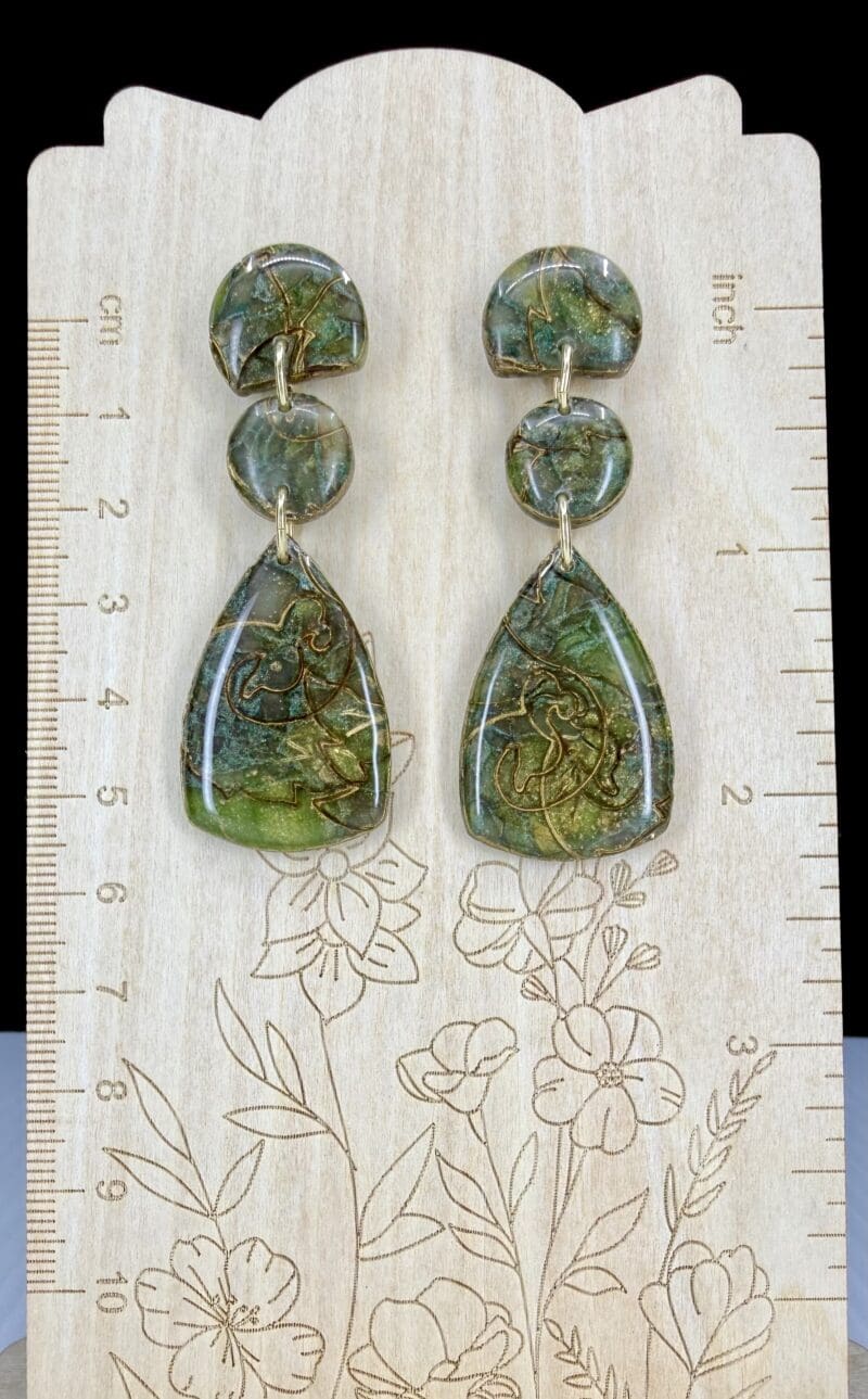 Jade Stone Inspired Geometric Teardrop Stacked Earrings