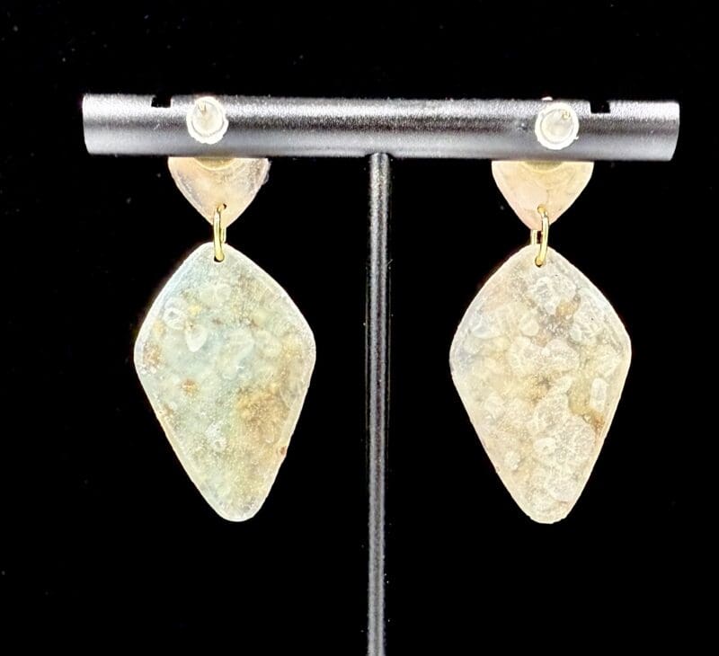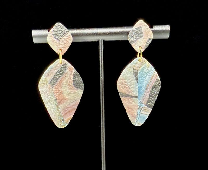 Soft abstract teardrop dangles featuring a layered, asymmetrical silhouette with subtle movement and texture. The organic shapes and faceted edges create visual interest without overwhelming, making these an easy statement pair. See this collection in natural sunlight here: https://www.facebook.com/share/r/1K2QwKyGcL/
