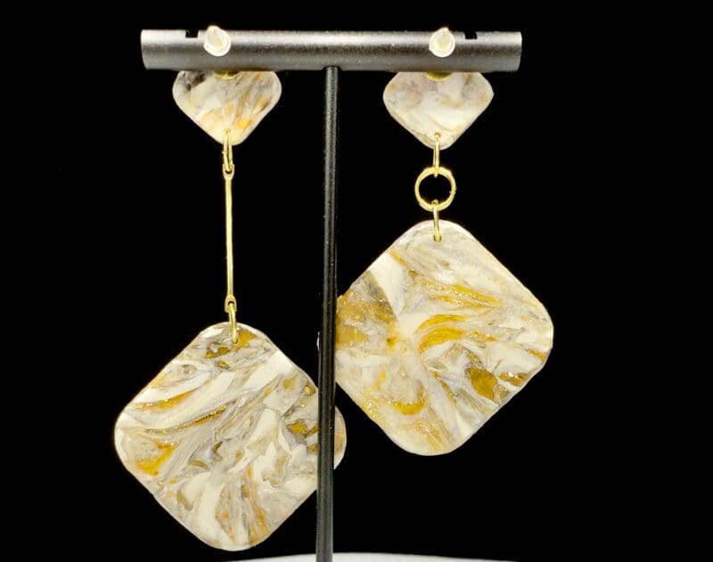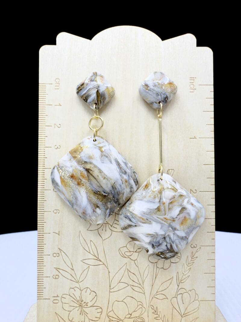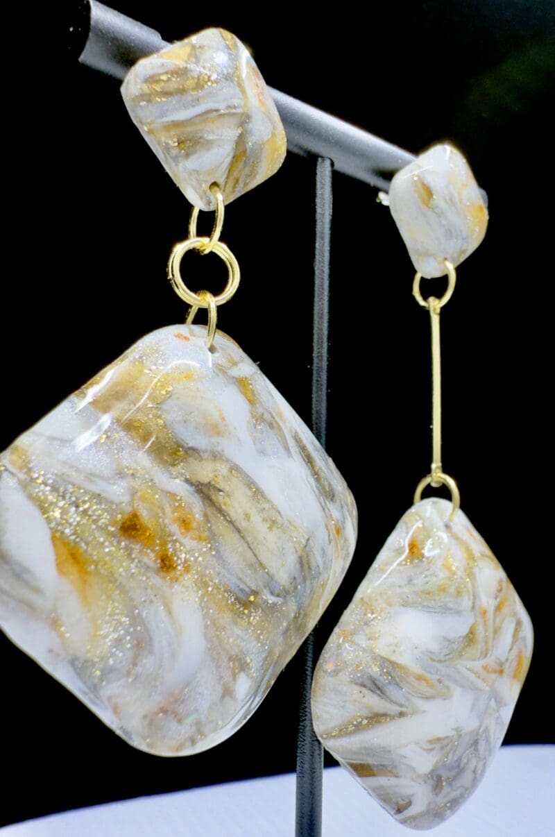 Granite-like marbling flows through softly sculpted diamond shapes, creating organic depth with shimmering mineral tones throughout the surface. These lightweight statement earrings feature dimensional hollow construction for bold presence without heaviness, bringing movement and individuality to your look. check them out here on Facebook: https://www.facebook.com/share/r/1AWN7BKcGs/
