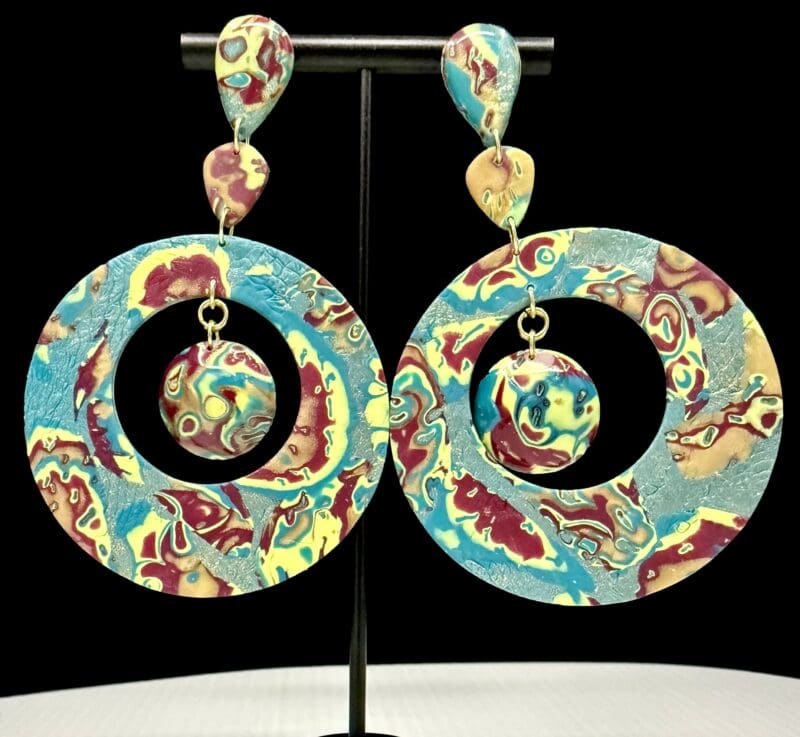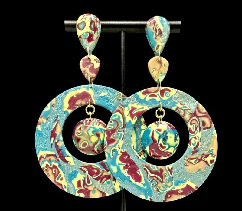 Nautical Color Flow Exaggerated Suspended Disc Hoop Earrings