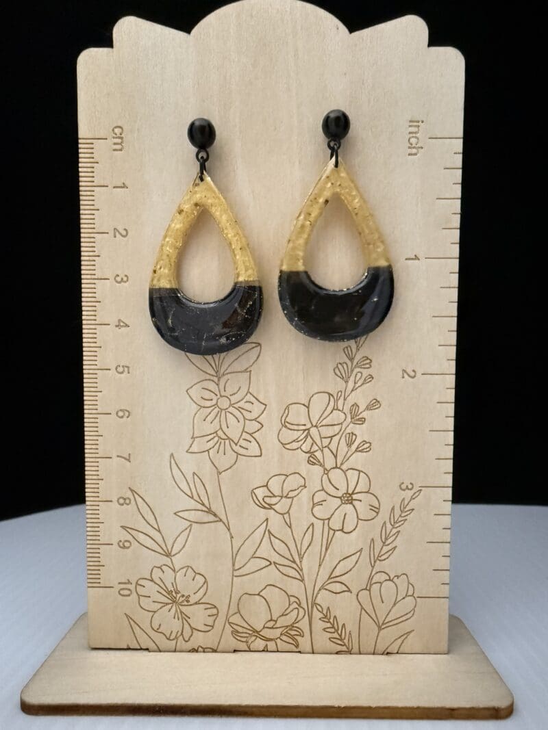 Retro Black and Gold Teardrop Earrings