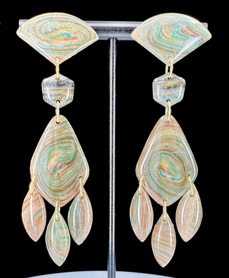 Teal and Sunset Geometric Stacked Swirl Earrings