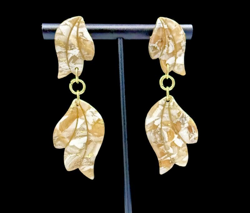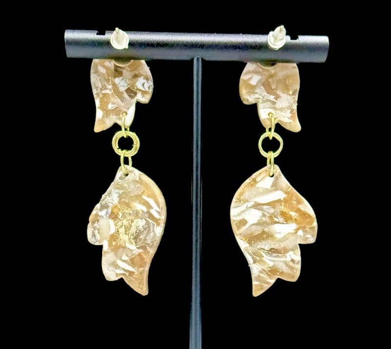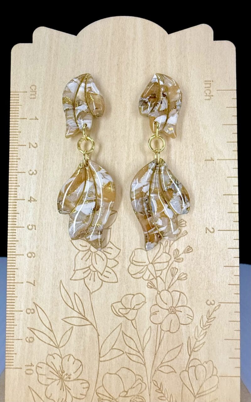 White And Gold Double Wing Dangle Earrings