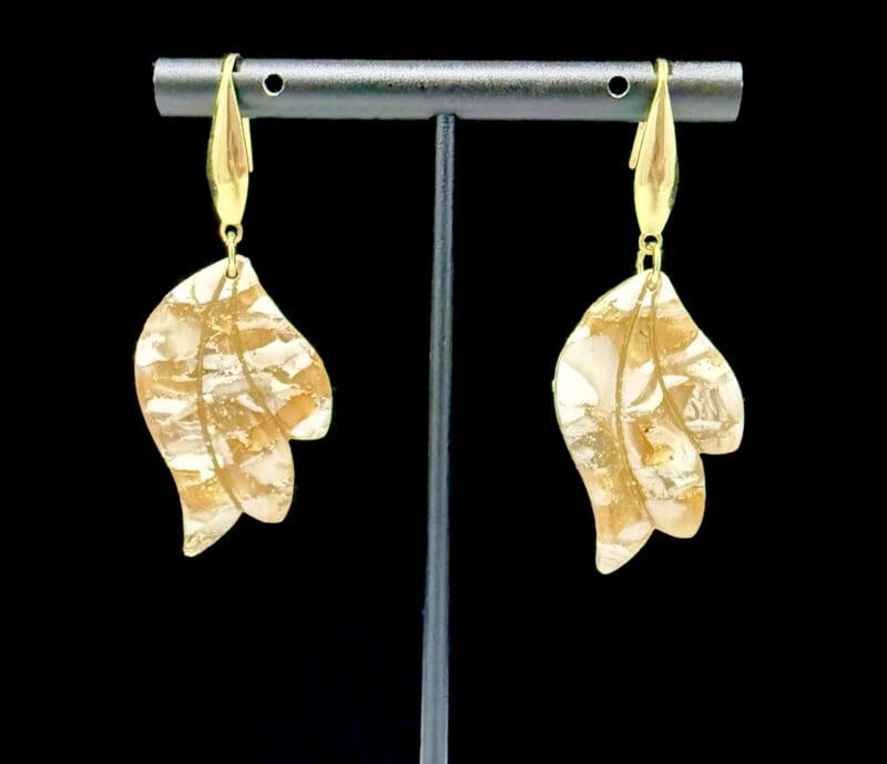 White And Gold Wing Drop Earrings